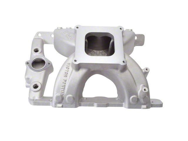 Edelbrock Part # 2957 Victor Pontiac intake manifold is designed for 389-455 competition engines using standard flange carburetors. This manifold is ideal for drag racing (Super Stock, Super Gas, Super Comp, Brackets, etc.), marine or any application requiring maximum power up to 7500 rpm. Compatible with standard Pontiac cast iron heads, or use with Edelbrock Performer RPM Pontiac aluminum heads for maximum power. Port exit size at head is 1.08" x 2.10" with enough material to open it up to larger port openings