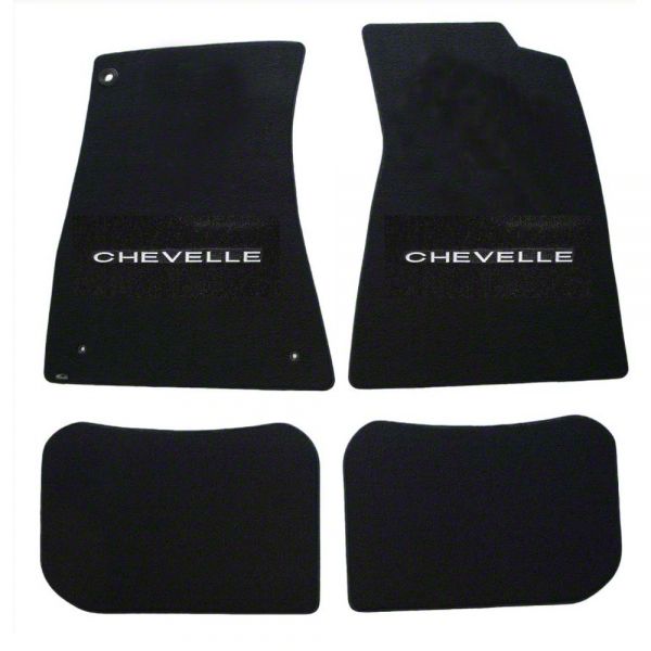 Lloyds Ultimat Black Front/Rear Floor Mats Silver Chevelle Logo (64-67 Chevelle; 64-67 Malibu)