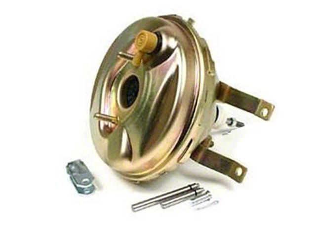 This brake booster is 100% Factory Correct in every way. It has the correct yellow zinc plating, rivets, mounting studs, actuating pin with proper markings, yellow vacuum fitting with proper markings, brake pedal clevis with clevis pin and retainer, white plastic dust cover and even the correct Delco part number for your specific year.