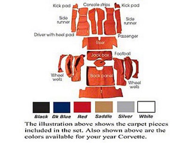 NOTE: Corvettes Have Listing Running Front To Back Giving The Carpet Left And Right Sides. Fit Before You Cut! For Carpet Without Original Foam Backing, Use P/N 25-103554-1.