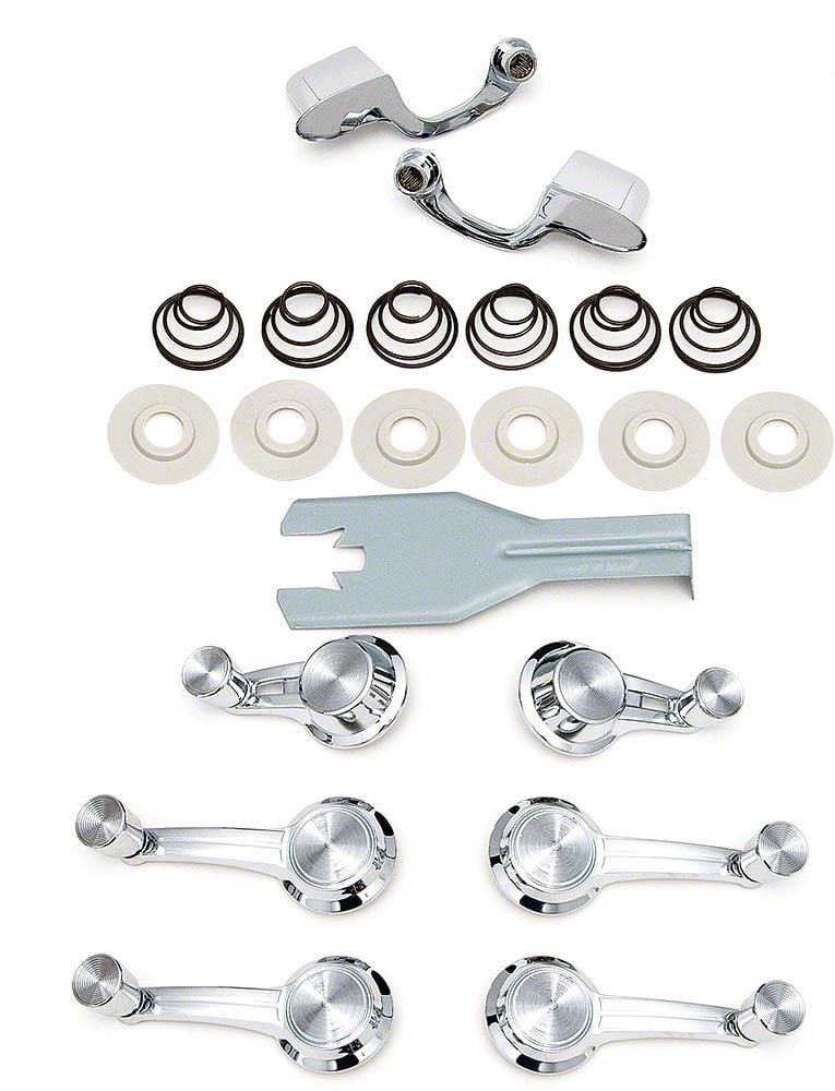 Door handles, Window Cranks and Vent Window Handles have a couple of things in common. 1. They are all made of pot metal and 2. We all know what pot metal does over time. Late Great Chevy has this handle kit to replace your pitted original ones all at once. High quality handles with nice chrome will really look nice in your Impala's fresh new interior. Trust Late Great Chevy for all your full size Chevrolet restoration parts needs.