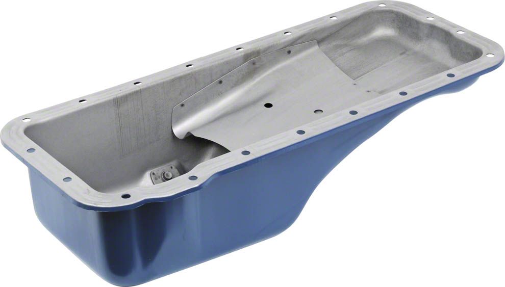 Steel oil pan painted black. Fits passenger cars only, not for Trucks or vans.68 b/f (cj) 42867/69 a, pc before 12/23/6865/69 b,b-GT,f,s,(2b,4b) 39067/71 a 390