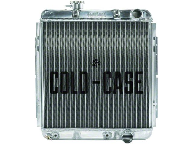 MAC’s Mustang is proud to offer this quality all aluminum radiator by COLD-CASE at an affordable price compared to other high price aluminum radiators on the market. This radiator is an exact fit (not a universal replacement) and replaces your original copper / brass radiator and will cool like a modern car! COLD-CASE radiators are Tig welded 100% aluminum and absolutely beautiful! Don't buy a 3 or 4 row aluminum radiator! It doesn't cool as good as this oversize 2 row model. COLD-CASE aluminum radiators are 50-75% lighter than your factory copper and brass radiator unit and cools up to 40% better. Plus, the incredible price makes this radiator an exceptional value.
