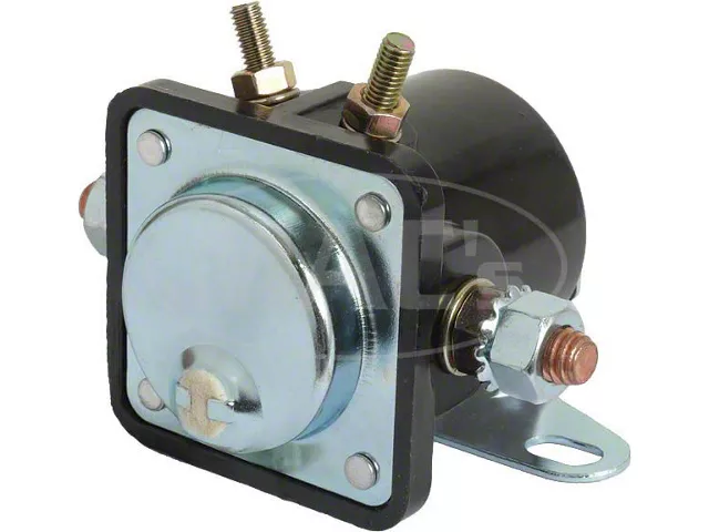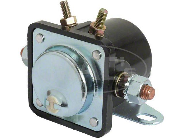 These starter relays are exact reproductions of the originals. They feature a finely detailed black case, correct lugs and correctly styled hardware. Original markings are stamping into the metal bracket on top.