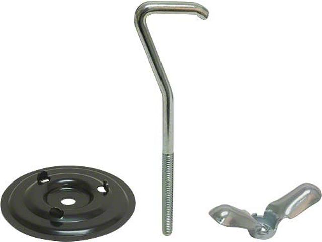 Kit includes a cadmium-plated wing nut, zinc-plated J hook mounting bolt, & painted mounting plate. Used from late 1965 through 1966.