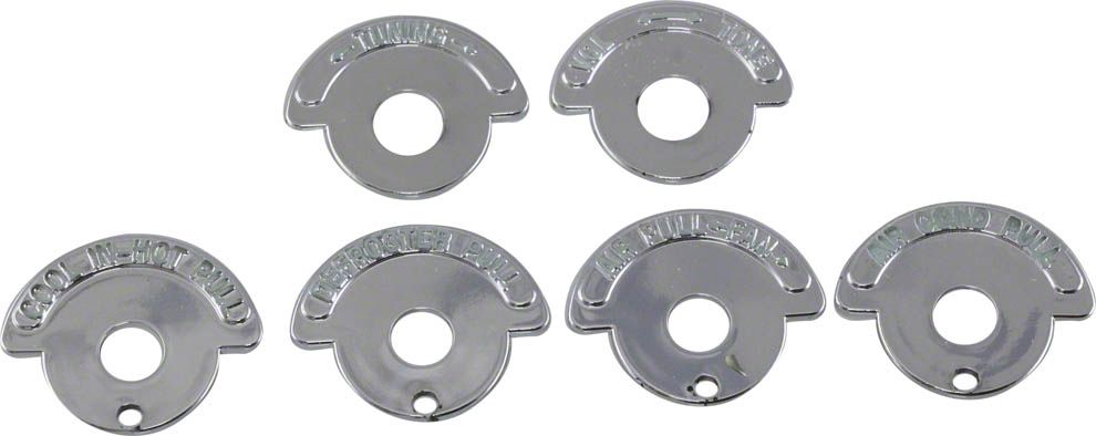 Restored Functionality and Style. The Dash Knob Indicator Bezels are specifically designed for Corvettes with air conditioning, replacing old or faded original equipment bezels. This set of six bezels includes controls for tuning, radio volume, and tone, as well as air pull-fan, cool in-hot pull, defroster pull, and air conditioning pull, restoring both the looks and functionality of your dashboard.