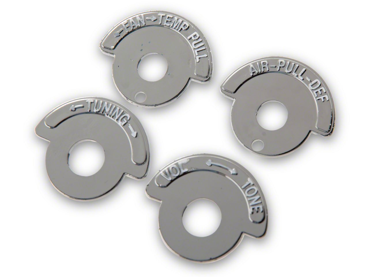 High-Quality Dash Knob Indicator Bezels. These Dash Knob Indicator Bezels are designed to replace old or faded bezels in your classic Chevrolet Corvette, specifically tailored for models without air conditioning. They provide clear labeling for heater and radio controls, ensuring your interior looks sharp and functions well.