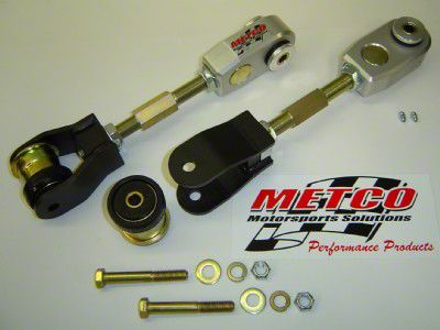 Ecklers is proud to carry The Metco Motorsports upper control arm is comprised of a precision-machined aluminum block housing a threaded steel pinion, a heavy-duty zinc-plated adjuster, and a precision-welded and powdercoated clevis. The combination of these premium components results in a control arm that can be installed as a direct replacement for the factory control arms, but offers the benefits of in-car adjustability, the firm response of polyurethane bushings, and an independently-verified 400% increase in strength.