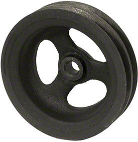 Construction and Appearance. Made from high-strength cast iron, this pulley is built to last. It follows original factory specifications, including the correct outside diameter of 6 1/8 inches, ensuring a perfect fit and reliable function. The durable finish resists wear and corrosion, maintaining its appearance and performance over time.