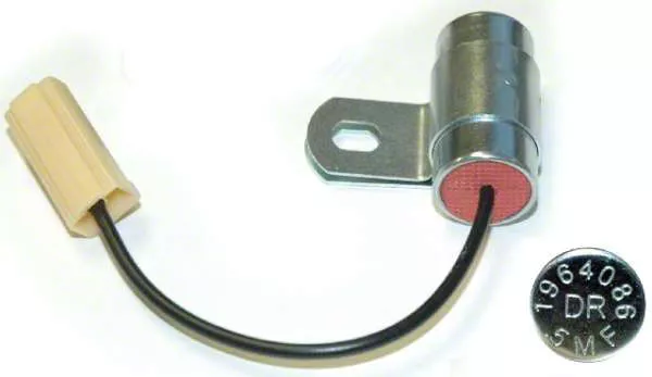 Construction and Appearance. This capacitor is constructed with a raw metal and matte black finish, offering durability and a sleek appearance. As a restoration part, it is designed to meet original specifications, ensuring compatibility and reliable performance. The capacitor effectively reduces radio noise, improving the overall driving experience.