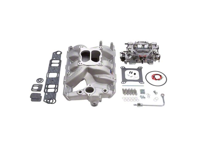 The Edelbrock #2056 Single-Quad Manifold and carb kit is designed for 1965-79 Pontiac 389-455 applications. With a Manifold and Carb Kit, it’s easy to upgrade your induction system with the best combination of Edelbrock proven performance and looks in a single box. These kits include: an Edelbrock manifold, Performer or Thunder Series AVS carb, chrome fuel inlet, intake gasket set, intake bolt set and carb stud kit. The manifold and carbs are available with a standard satin finish or with our bright EnduraShine chrome-like finish for long lasting show quality looks