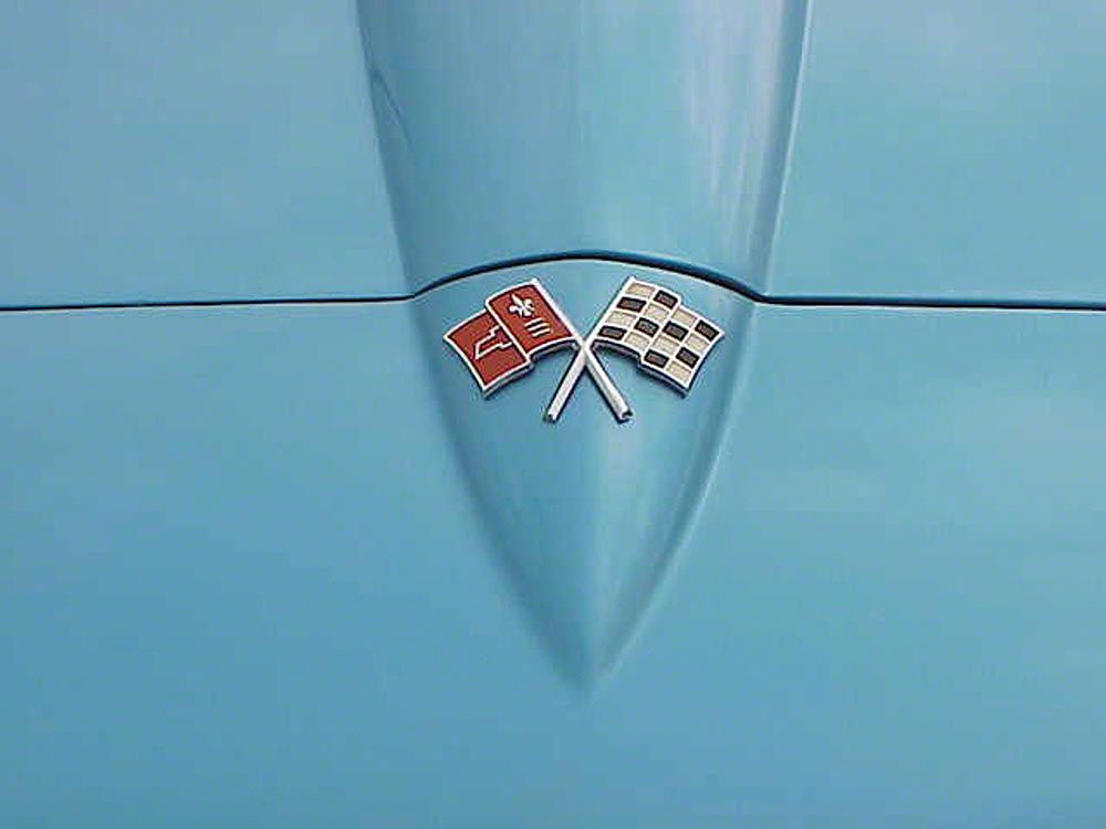 Front Emblem Replacement. The Front Emblem, Crossed-Flags, 1965 is designed to restore or replace the original front emblem on your Corvette. This emblem serves as a distinctive identification feature enhancing both authenticity and visual appeal. It is essential for maintaining the classic look of the vehicle.