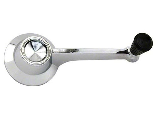 This window crank handle is the type with the black knob. It is correct for the front of all 2-Doors, and the front or rear of all 4-Door Sedans & Station Wagons.