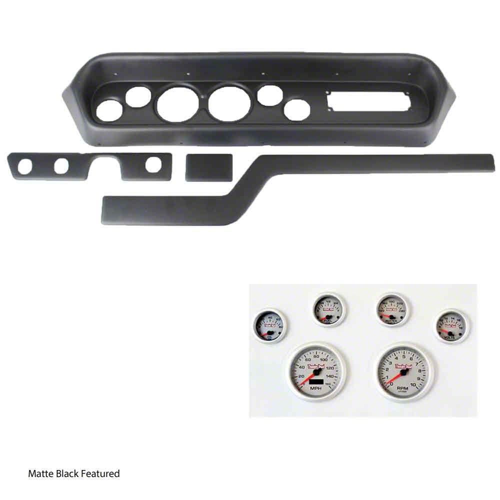 Molded ABS Instrument Panel will replace the original Gauge Housing. This panel comes with Thunder Road Concorse Series Silver Face gauges 3 3/8 160 MPH Programmable Speedometer, 10,000 RPM Tach, 0-80 PSI Oil Pressure Gauge, 120-280 Water temp Gauge 8-18 Volt gauge, and a programmable Fuel level Gauge to match the sending unit in your tank Lighting through Dial. Turn Signal kit sold separately