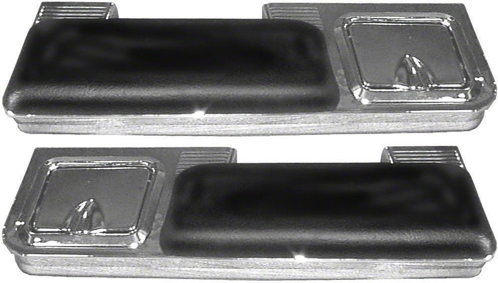 Armrest Pad & Chrome Base Set, Rear, Black, With Ashtray, 2-Door Coupe (66-67 Chevelle; 66-67 Malibu)
