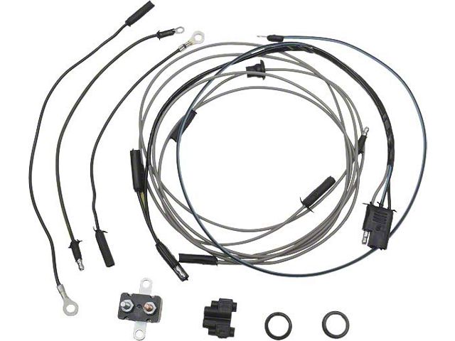Includes under-dash wiring, 10 amp breaker, feed wires to solenoid and lights, 2 ground wires, 2 firewall grommets, wiring diagram and instructions.