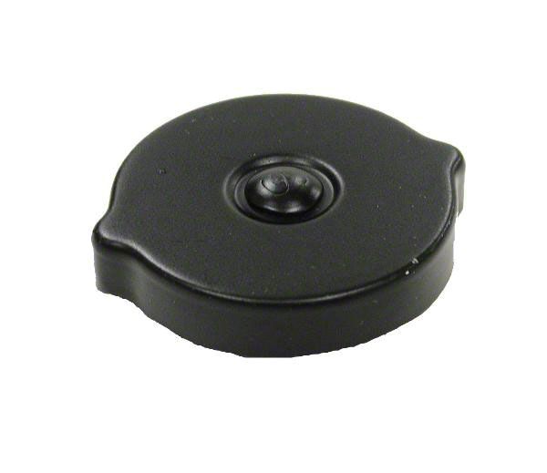 Construction and Appearance. Constructed from premium-grade materials, this cap features a sleek all-black finish. It includes an "S" stamped rivet, which adds to its classic appeal while ensuring it meets original factory specifications. The twist-in style cap provides a tight, heat-resistant closure for long-lasting durability.