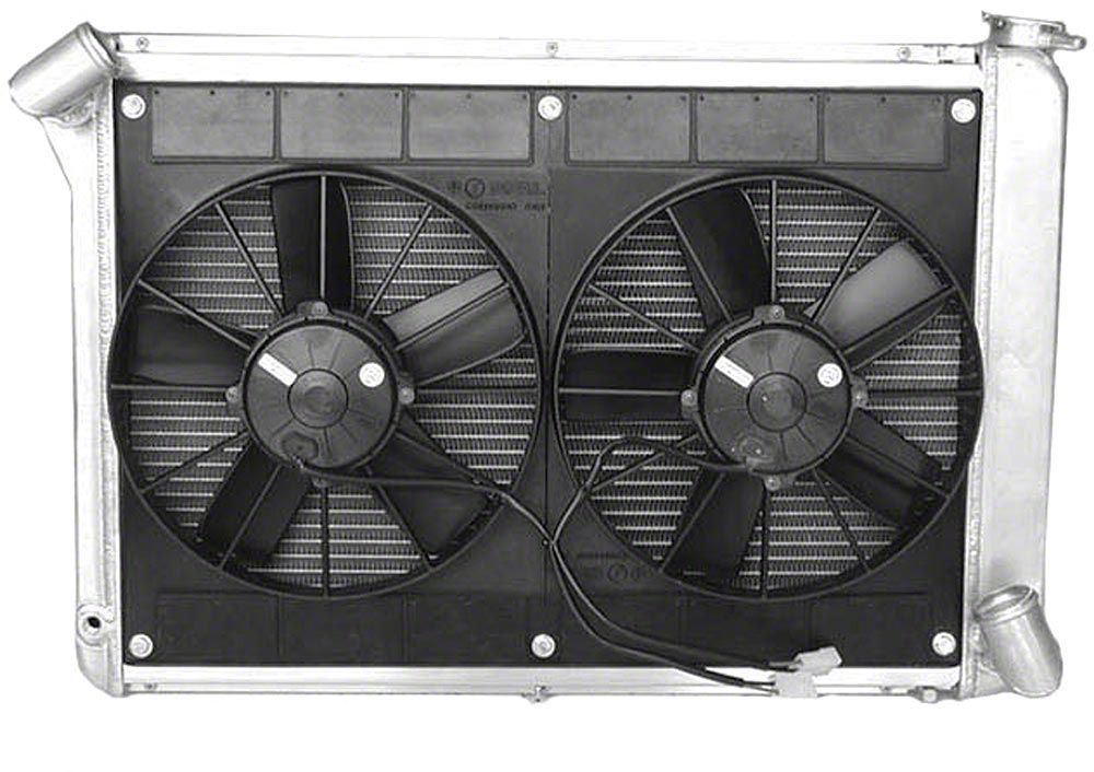 This package includes a special 23.5" aluminum radiator and the Spal dual 11" fan combined. This package eliminates the factory fan shroud and engine driven fan. It is a direct bolt in without modifications. Price includes one Relay and one wiring harness. Wiring instructions are included.