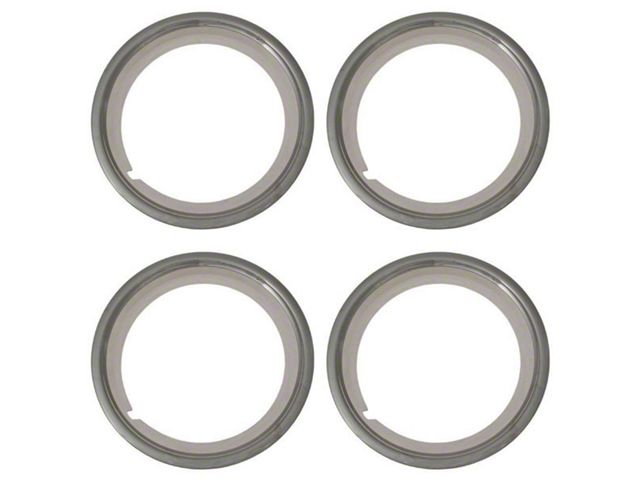 This is a complete set of four wheel trim rings for 1966-1969 Mustangs. Great reproductions of the original parts. Constructed from high-quality polished stainless steel. For use with 14" styled steel wheels; sold as a set of four. Count on MAC's for all of your classic Mustang restoration needs.