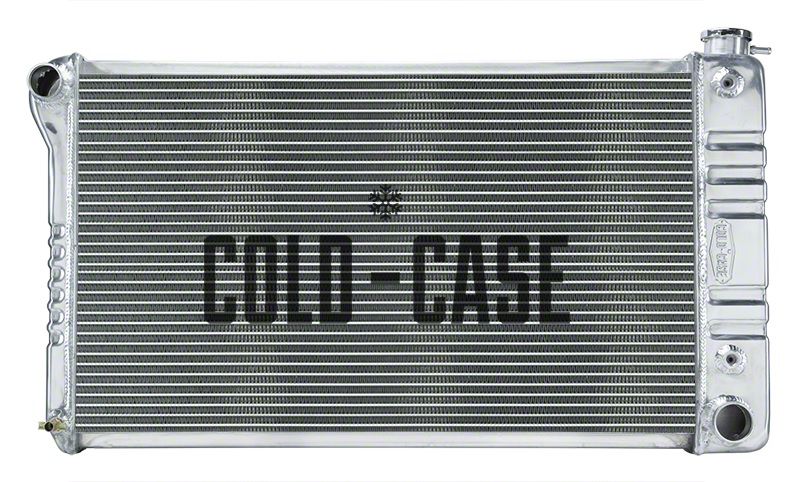 Eckler’s is proud to offer this quality all aluminum radiator by COLD-CASE at an affordable price compared to other high price aluminum radiators on the market. This radiator is an exact fit (not a universal replacement) and replaces your original copper / brass radiator and will cool like a modern car! COLD-CASE radiators are Tig welded 100% aluminum and absolutely beautiful! Don't buy a 3 or 4 row aluminum radiator! It doesn't cool as well as this oversize 2 row model.