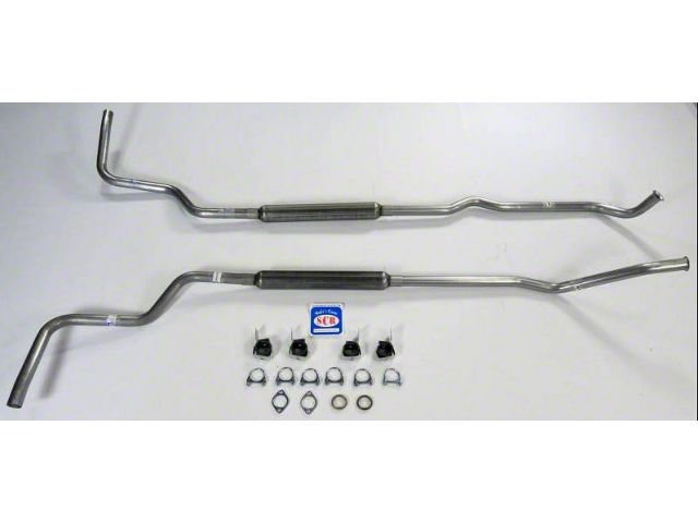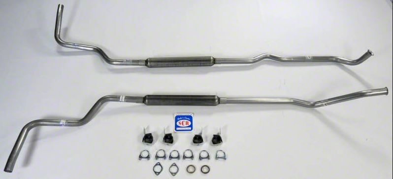 This system fits 1966-1974 Bronco's. It features the original pipe bends, muffler shape, and location. Unlike the original, ours has aluminized pipes with mandrel bends and turbo muffler. This configuration produces a performance throaty tone without drone at cruising speed. It works with original hangers (not included), but you can purchase universal hangers from us or locally. This is an extremely high-quality exhaust system. You would be hard-pressed to find a local exhaust shop that could produce something close for any price. The best part is you should never need another exhaust system, no matter how your choose to use your Bronco.