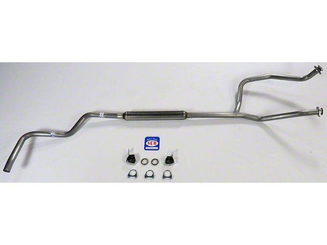 This system fits 1966-1974 Bronco's. It features the original pipe bends, muffler shape, and location. Unlike the original, ours has aluminized pipes with mandrel bends and turbo muffler. This configuration produces a performance throaty tone without drone at cruising speed. It works with original hangers (not included), but you can purchase universal hangers from us or l