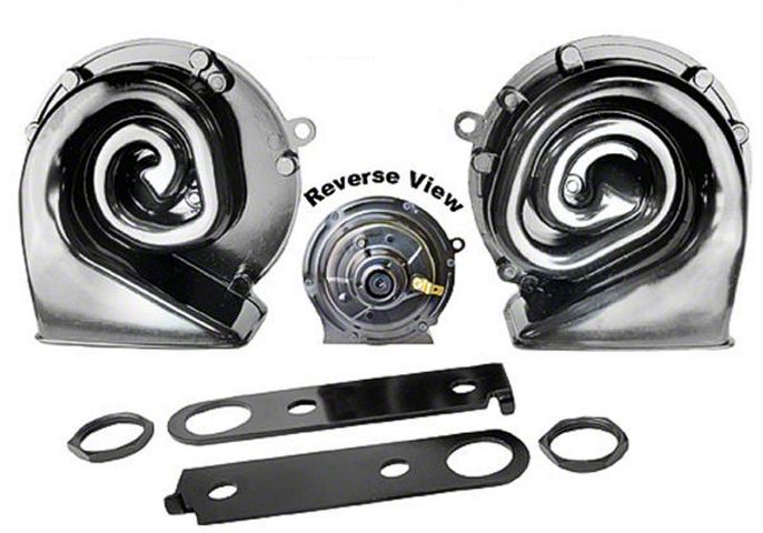 This is a great opportunity to replace those weak, ugly, or missing horns with these excellent reproductions from Dynacorn! Because the brackets aren't permanently attached you can position them just like the originals or they can be set up for custom vehicles. This will allow you to toot-and-wave at your friends with authority! We are proud to continue to bring you great products for your favorite Ford.