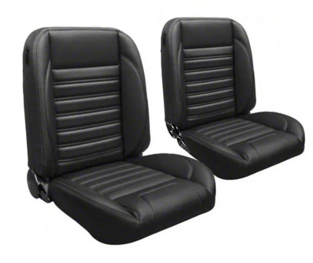 TMI Low Back Pro-Series Sport Bucket Seats give your truck a cutting edge look. The upgraded vinyl seats feature your choice of stitch and grommet colors. These assembled seats come complete with molded seat foam and tubular steel frames and feature a reclining mechanism, slider tracks and easy to install brackets. Handcrafted in the USA.