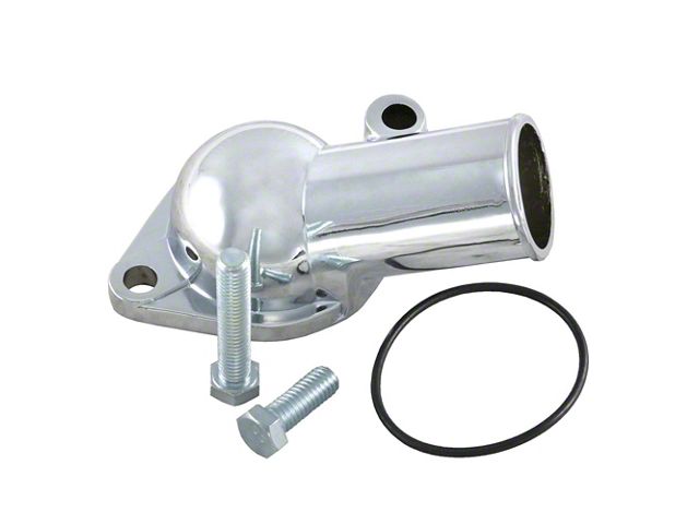 Construction and Appearance. Crafted with show-quality chrome plating, this thermostat housing offers both durability and an eye-catching finish. The included neoprene O-ring and stainless steel bolts ensure a secure and lasting installation.