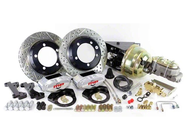 Performance braking for 16" wheels! The Master Power Brakes Rallye Series takes a good thing and makes it better. This system is a complete brake solution that upgrades your original drum brakes to disc brakes with a distinct, modern performance look and feel. This kit consists of high quality 4-piston billet aluminum calipers and brackets along with the added benefits of slotted and drilled rotors. All of this gives increased performance over the Legend Series disc brake kit, but still allows the use of stock 16" wheels. Requires 16" wheels minimum for proper fitment, kit ships unassembled. For all of your classic Ford restoration needs, you can always count on MAC's.