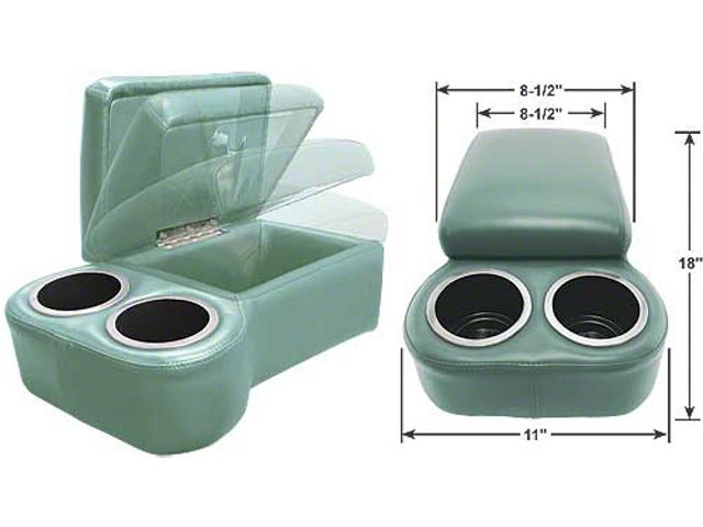 How's this for a great idea? This BC Seat Cruiser Console is specifically designed to fit on any bench seat, it features 2 king size drink holders, now with chrome edge trim, plus the hinged top opens to reveal a large storage compartment. The console top is softly padded to provide you with a comfortable armrest & a sewn-in strap is provided to secure the console to the seat. Available in a dozen beautiful colors, the entire console is upholstered in long wearing automotive grade vinyl with double stitched French seams to complement almost any interior.