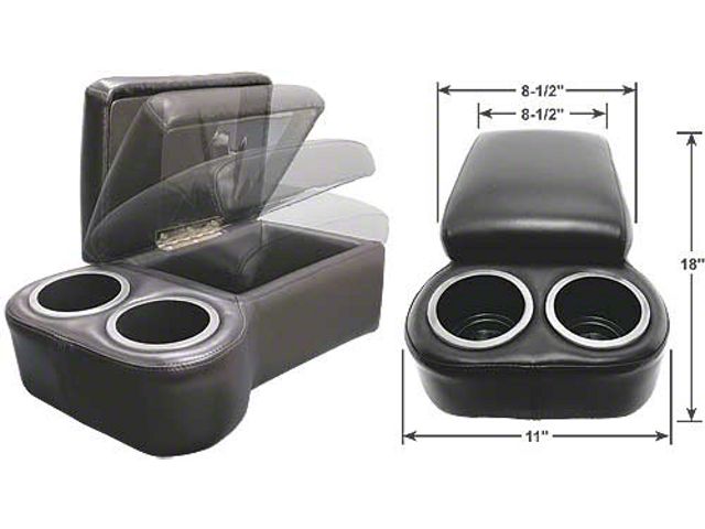 How's this for a great idea? This BC Seat Cruiser Console is specifically designed to fit on any bench seat, it features 2 king size drink holders, now with chrome edge trim, plus the hinged top opens to reveal a large storage compartment. The console top is softly padded to provide you with a comfortable armrest & a sewn-in strap is provided to secure the console to the seat. Available in a dozen beautiful colors, the entire console is upholstered in long wearing automotive grade vinyl with double stitched French seams to complement almost any interior.