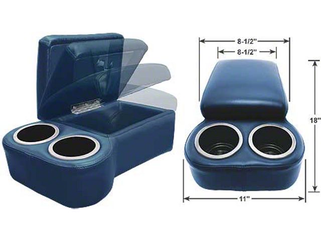 How's this for a great idea? This BC Seat Cruiser Console is specifically designed to fit on any bench seat, it features 2 king size drink holders, now with chrome edge trim, plus the hinged top opens to reveal a large storage compartment. The console top is softly padded to provide you with a comfortable armrest & a sewn-in strap is provided to secure the console to the seat. Available in a dozen beautiful colors, the entire console is upholstered in long wearing automotive grade vinyl with double stitched French seams to complement almost any interior.