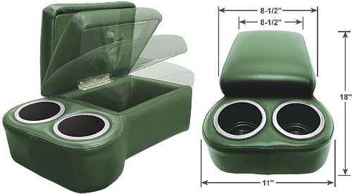 How's this for a great idea? This BC Seat Cruiser Console is specifically designed to fit on any bench seat, it features 2 king size drink holders, now with chrome edge trim, plus the hinged top opens to reveal a large storage compartment. The console top is softly padded to provide you with a comfortable armrest & a sewn-in strap is provided to secure the console to the seat. Available in a dozen beautiful colors, the entire console is upholstered in long wearing automotive grade vinyl with double stitched French seams to complement almost any interior.
