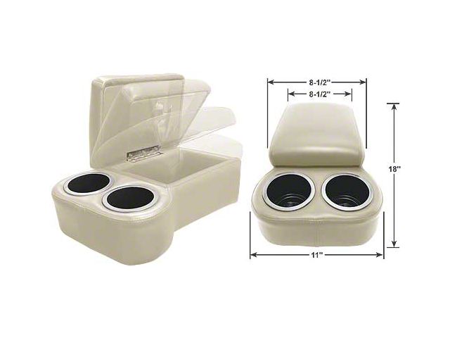 How's this for a great idea? This BC Seat Cruiser Console is specifically designed to fit on any bench seat, it features 2 king size drink holders, now with chrome edge trim, plus the hinged top opens to reveal a large storage compartment. The console top is softly padded to provide you with a comfortable armrest & a sewn-in strap is provided to secure the console to the seat. Available in a dozen beautiful colors, the entire console is upholstered in long wearing automotive grade vinyl with double stitched French seams to complement almost any interior.