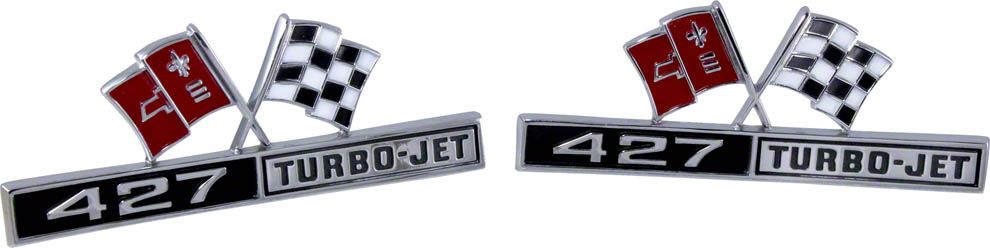 Authentic Side Fender Emblems. The Side Fender Emblems are designed as a tribute to the iconic 427 CI engines, capturing the original emblem's essence. Perfect for restoration projects, these emblems add a touch of authenticity and visual appeal to your classic Corvette.