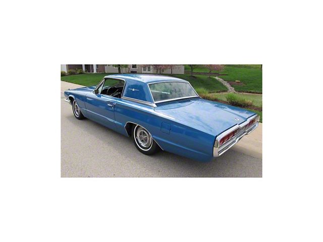 Back glass for your 66 Ford Thunderbird. The back glass is for and comes with your choice of clear, green tint or light grey tint. Fits 2door hard tops with blind quarter style roofs model #63C/D.