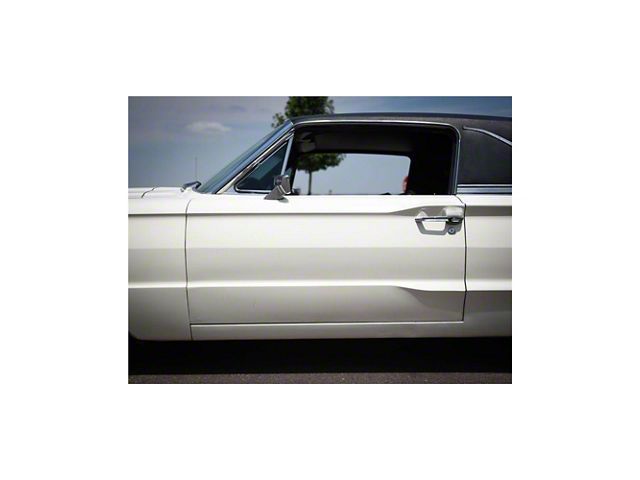 Door glass for your 66 Ford Thunderbird. The door glass comes with your choice of clear, green tint or light grey tint. Fits 2door hard tops model #63C/D that have a blind quarter roof on the left or right hand side.