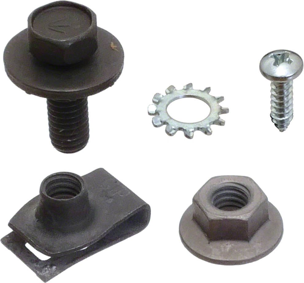 2 pan head Phillips screws, 2 external-tooth lock washers, 2 faceted-flange-head black oxide finish bolts, 4 faceted-flange black oxide finish lock-nuts, 10 threaded U-nuts and 18 hex-head black oxide finish bolts with captive flat washers.