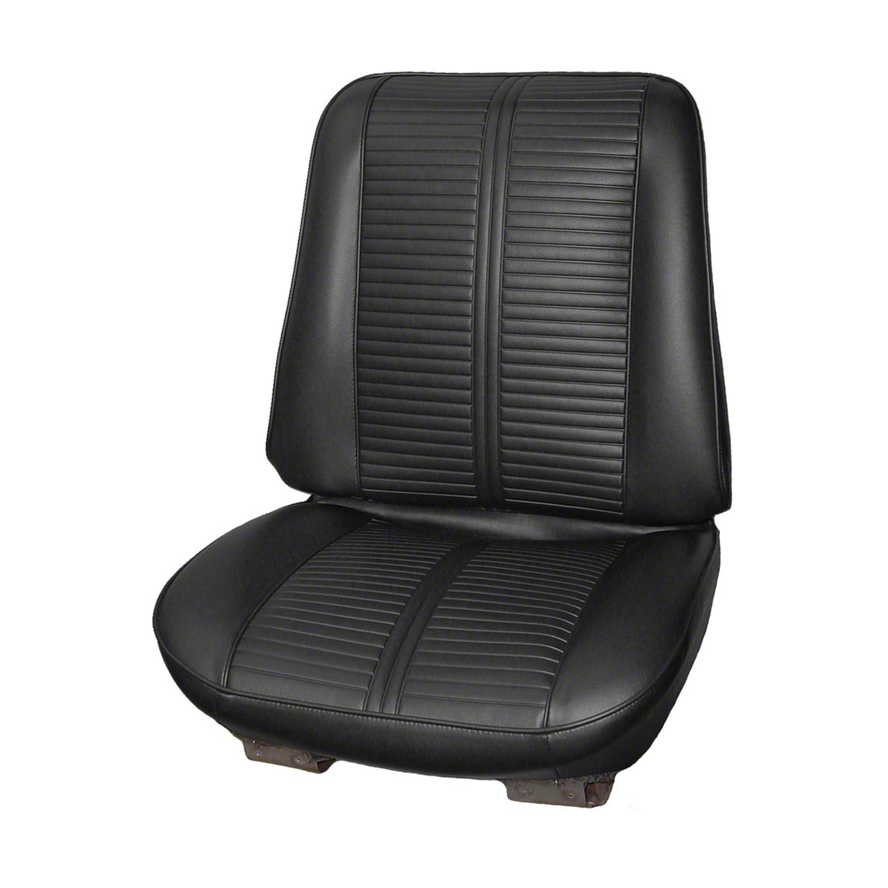 Restore your classic's interior using quality reproduction replacement seat covers from Legendary Auto Interiors. Each set features as-original madrid grain accent bands and skirts with die-electrically heat-sealed, madrid grain skirts. Fits cars with a reclining passenger side seat. Includes seat upholstery only, seat foam sold seperately.