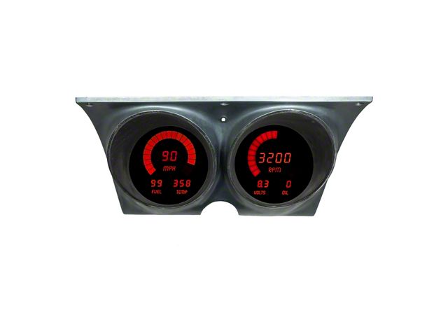 Impress your friends with this stunning 1967-1968 Camaro / Firebird LED Digital Dash its sweeping gauges. The 1967-1968 Camaro / Firebird LED Digital Dash comes complete with direct fit printed circuit board, custom fit "smoked" plexiglass faceplate, universal sending units for water temperature S8013, oil pressure S8434, speedometer S9013 for cars without electronic transmission or cruise control, and hardware kit. Everything directly fits into your existing housing, but you may need to run some new wires to the speed sensor. Available in R(Red), G(Green), B(Blue), or W(White).