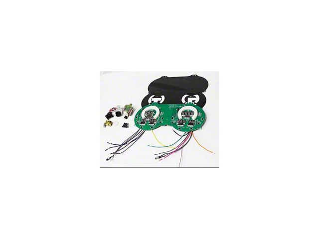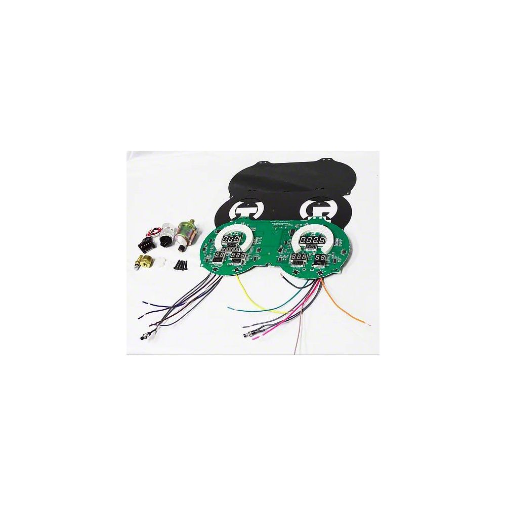 Impress your friends with this stunning 1967-1968 Camaro / Firebird LED Digital Dash its sweeping gauges. The 1967-1968 Camaro / Firebird LED Digital Dash comes complete with direct fit printed circuit board, custom fit "smoked" plexiglass faceplate, universal sending units for water temperature S8013, oil pressure S8434, speedometer S9013 for cars without electronic transmission or cruise control, and hardware kit. Everything directly fits into your existing housing, but you may need to run some new wires to the speed sensor. Available in R(Red), G(Green), B(Blue), or W(White).