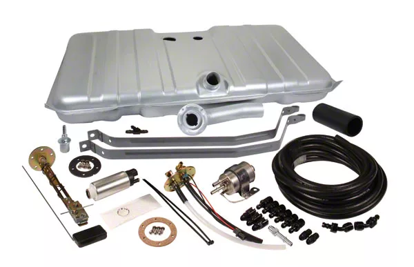 Our Complete Fuel Injection Tank Kit is the most complete choice when adding a fuel injection-ready tank to your vehicle. Our application specific kits allow you to add an in-tank fuel pump to your classic car or truck. All kits include an original fit tank with built-in fuel tray, a fuel tank sending unit and a fuel regulator/filter combined with the most complete EFI fuel line kit in the market. This EFI Fuel Line Kit comes with the fuel hoses and all the fittings to plumb from the fuel pump forward. All our fuel fittings have a push lock connect end that does not require specialty tools to disassemble. Our kit also includes a 255 l/h In-tank pump that supports up to 600 HP or an upgraded high-volume pump option with the proper install components. Contains all of the necessary pieces to mount to your vehicle(mounting straps and filler tubes included when necessary).