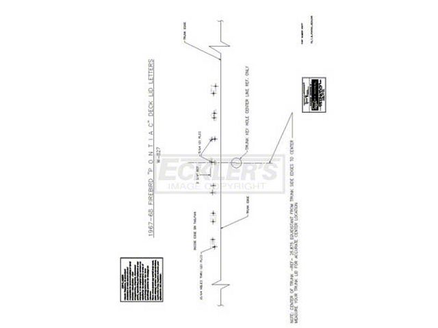 When you decide to install new emblems and body moldings to the sheet metal of your 1967 or 1968 Pontiac Firebird, it can be daunting to get started. You want an exact fit on your Firebird, but you might lack the proper materials. Eckler's Firebird is happy to be your solution, by offering the best emblem and body template kits for your F-Body. These easy to use full-size digitally rendered emblem placement templates will exactly locate all body, fender, hood, header, and trunk lid emblem holes quickly and professionally. We also offer templates for lower body moldings, rear quarter panel louvers, backup lamps, antenna hole placement, sidemarker locations, and fenderwells. Don't spend another moment agonizing on how to best apply your new emblems or body components.