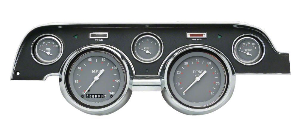 These 1967-1968 Classic Mustang gauge clusters come completely assembled, prewired by hand and mounted in a premium quality reproduction OEM dash bezel ready to bolt into your dash. A brushed aluminum dash bezel is available as an upgrade and looks great! This package plugs right into your car's wiring with one of our two available wiring harnesses. One is for 1967, while the other is for 1968. Both are sold separately. The fuel gauge is designed to work with the original 75-10 ohm fuel sender range. Each set includes a Ford style pulse signal generator (for vehicles that use a speedometer cable), a 3/8" NPT temperature sender, and an oil pressure with Ford bushing kit for WARNING: Cancer and Reproductive Harm - www.P65Warnings.ca.gov