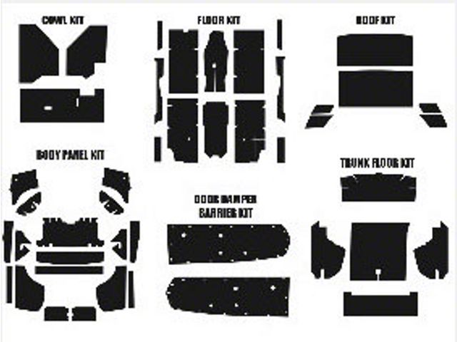 Each kit includes insulation for: interior floor, trunk floor, body panels, cowl, roof, plus door dampers.