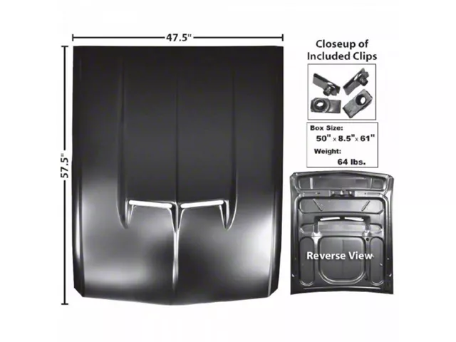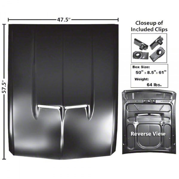 67-68 Mustang Eleanor Style Steel Hood w Functioning Scoops