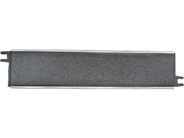 These plastic dash trim panels are just like the originals for the standard interior. They have a black "camera case" textured finish with a chrome raised edge. A lower left trim piece not used in 1967-1968 with the standard interior.