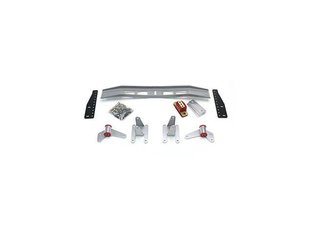 Frame mounts and transmission crossmember bolt-in to factory mounting holes, requiring no drilling or modifications