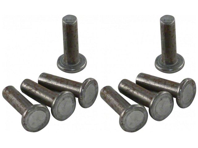 All 1967-1969 Firebird upper ball joints were riveted to the A-arm from the factory. Eckler's Firebird offers this correct replacement upper ball joint rivet set for the factory appearance that just can't be duplicated with a nut and bolt installation. This set of eight rivets does both front upper ball joints on your 1967-1969 Firebird. Because the upper ball joint is such an important component machine shop installation of these rivets is suggested. Trust Eckler's Firebird for all your suspension, exterior and interior part needs.